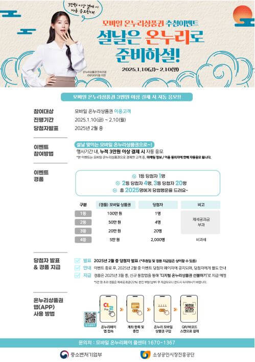 디지털 온누리상품권(카드형, 모바일) 결제 추첨 이벤트! 설날은 온누리로 준비하설~