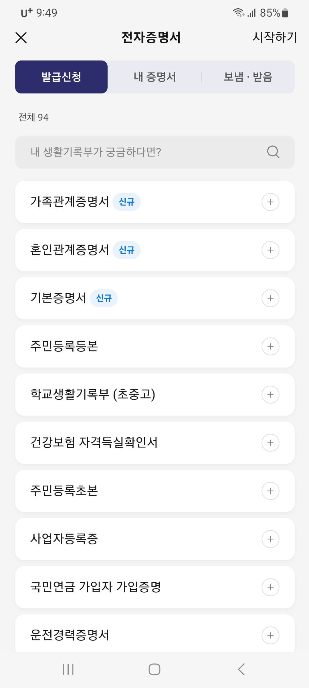 3. 약관에 동의 후 자신이 필요한 증명서를 발급합니다. 네이버에는 생활기록부, 주민등록등본 초본 등의 다양한 증명서들이 존재합니다.