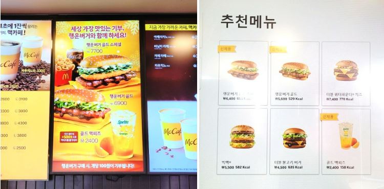 맥도날드의 다양한 메뉴