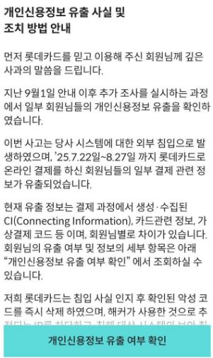 - 롯데카드 홈페이지에서 피해 여부 확인