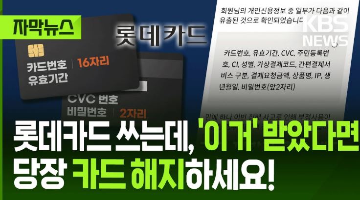 "롯데카드입니다. 해킹으로 인해 개인정보를 확인해야 합니다"